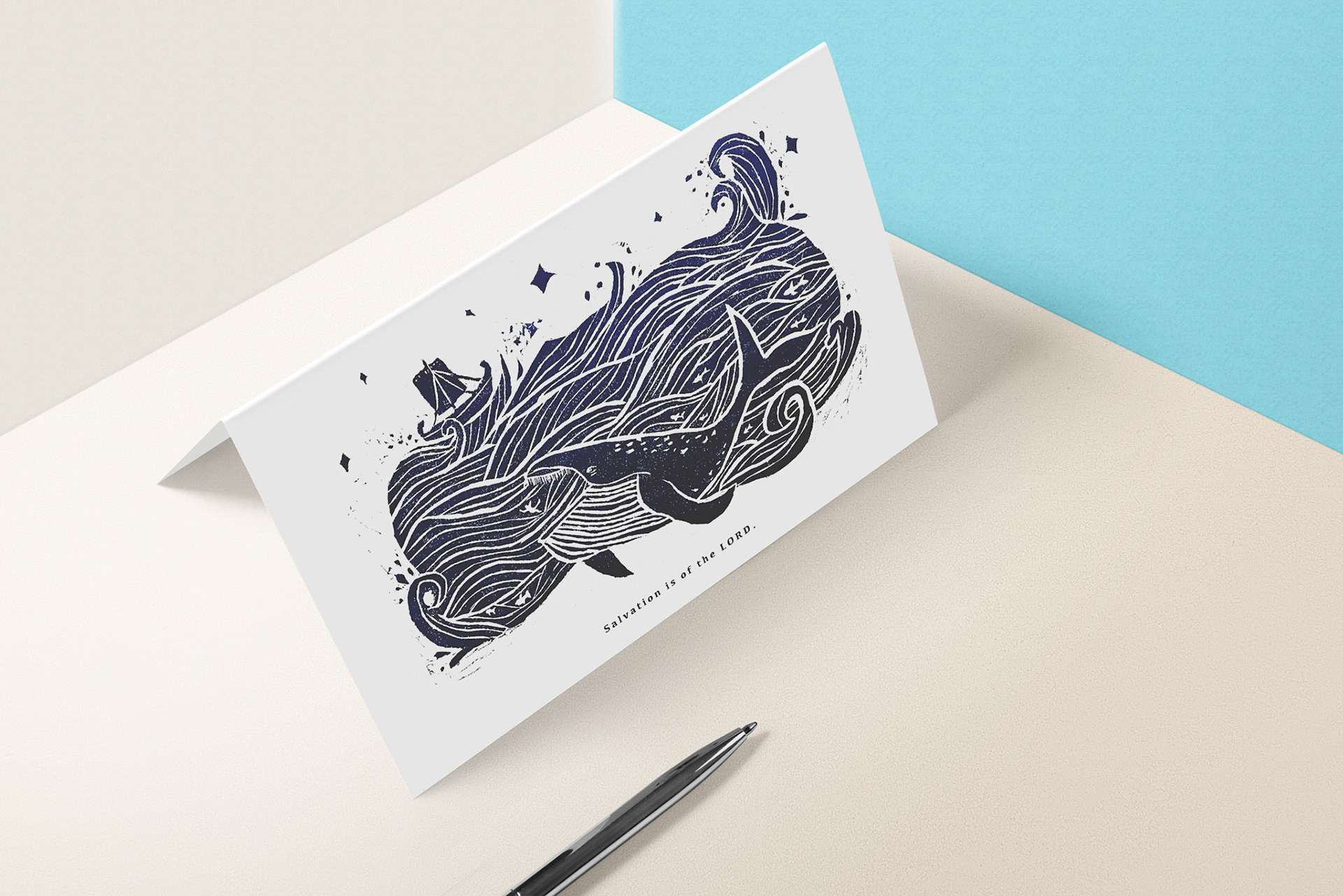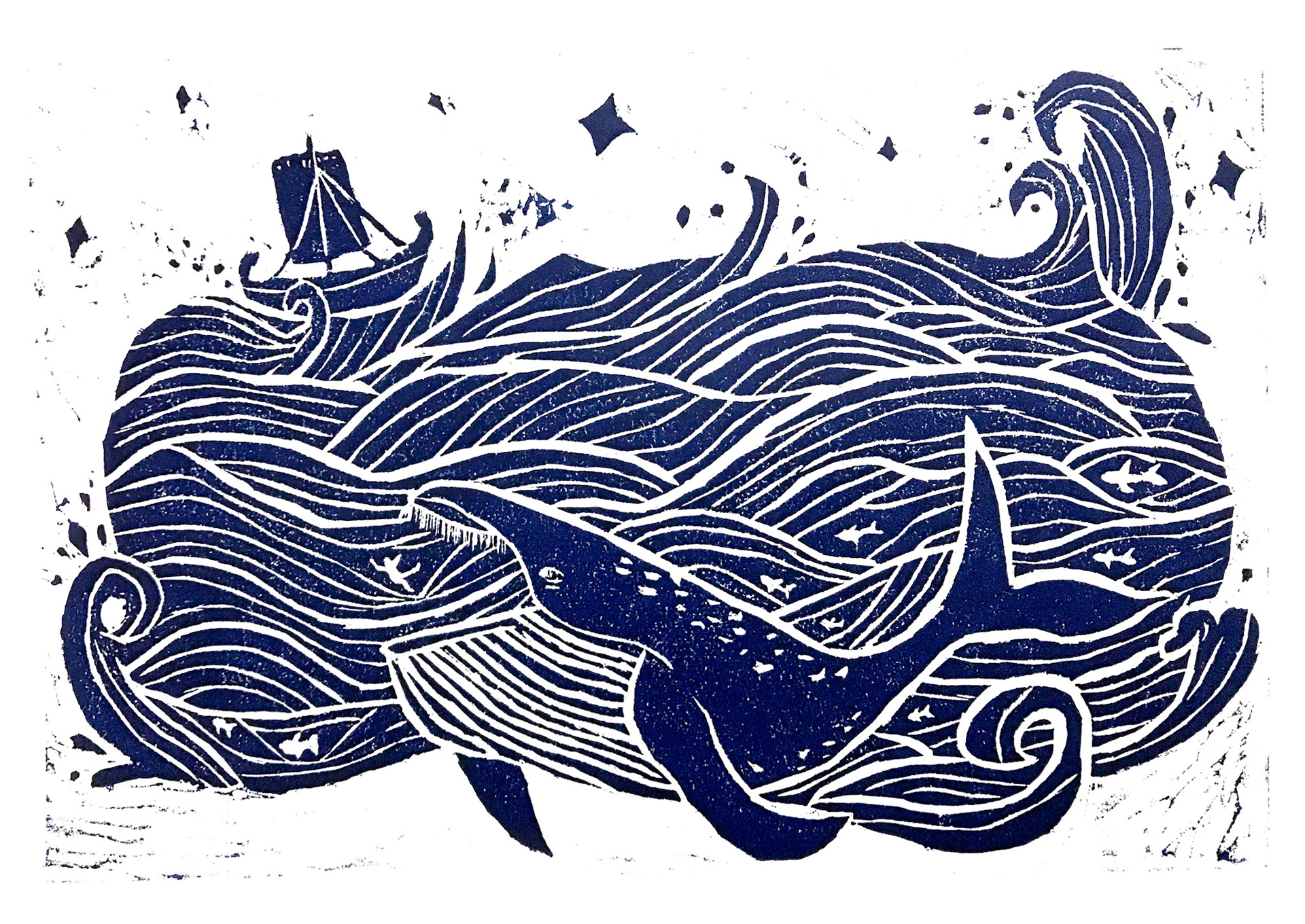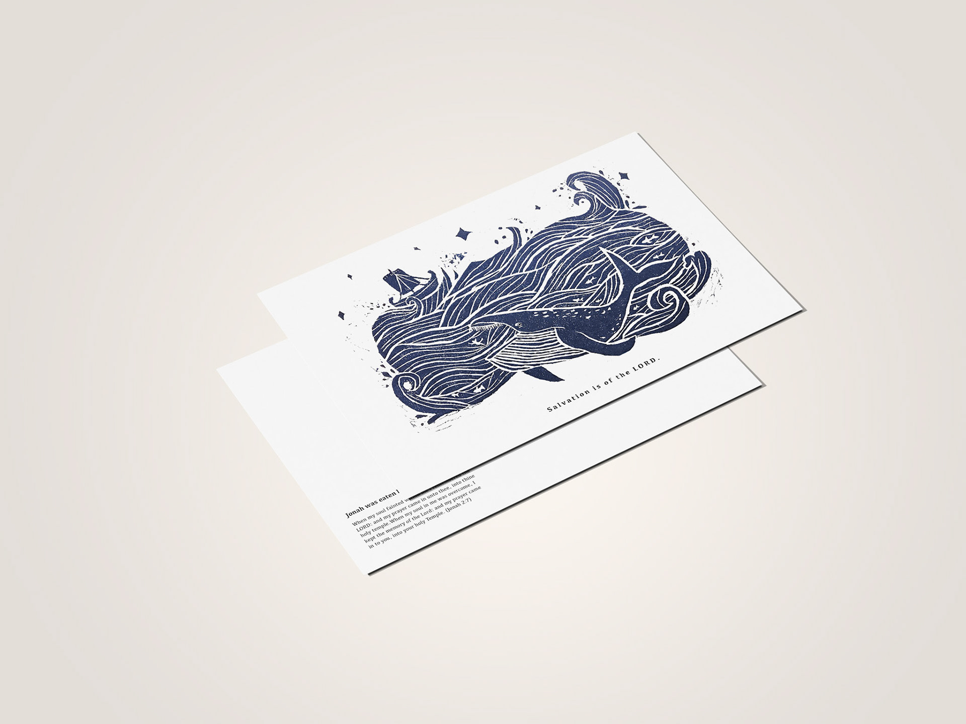 這是一張木版雕刻印刷畫,用以表達“約拿被大魚吃掉”的聖經故事。 This is a woodblock printing image to express a bible story of "Jonah was Eaten by Big Fish".