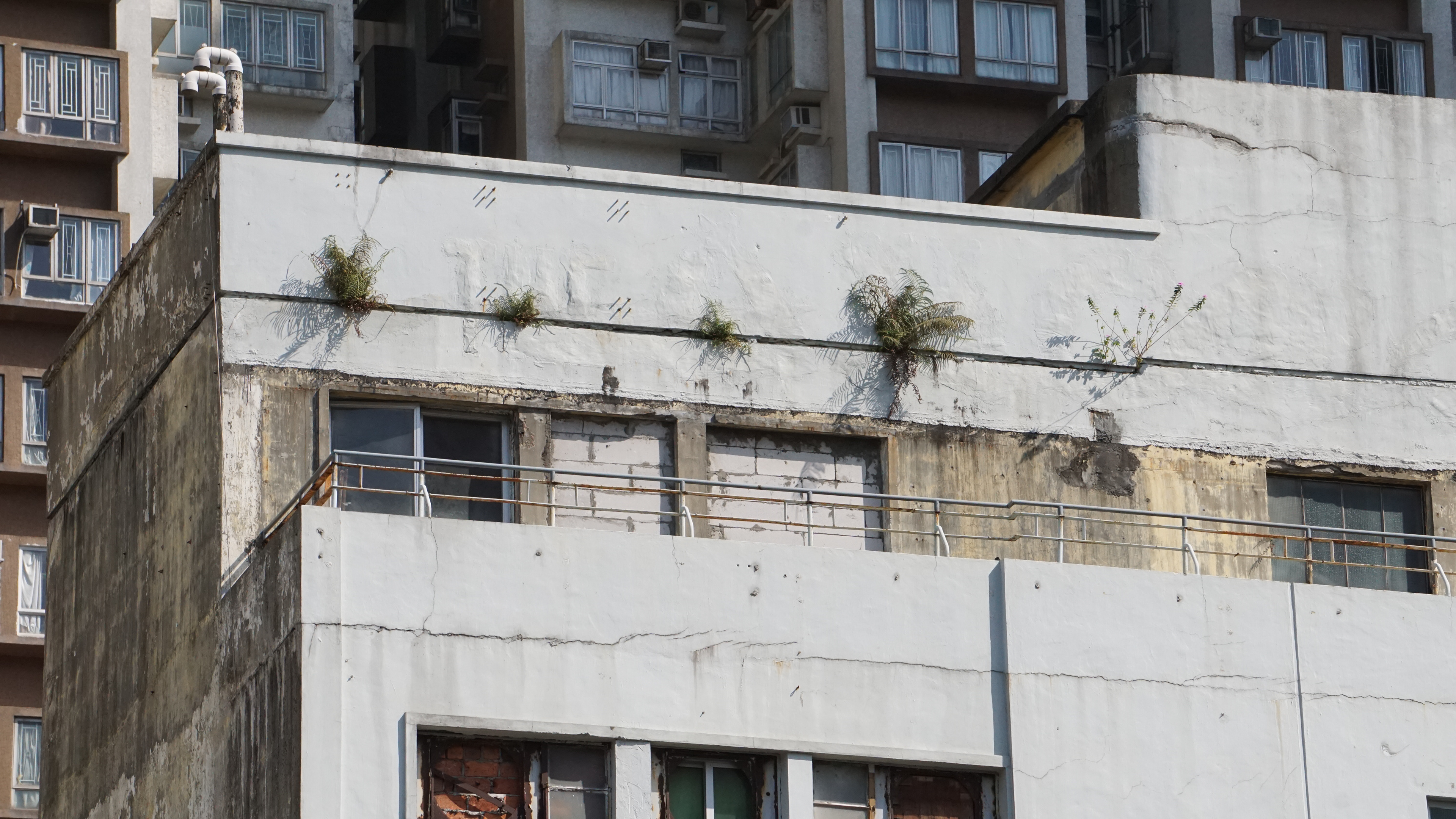 A series of photos In Hong Kong, there are many skyscrapers, trees lose in order to have urban development. However, plants have nice vitality, they still can grow even in a limited space.
